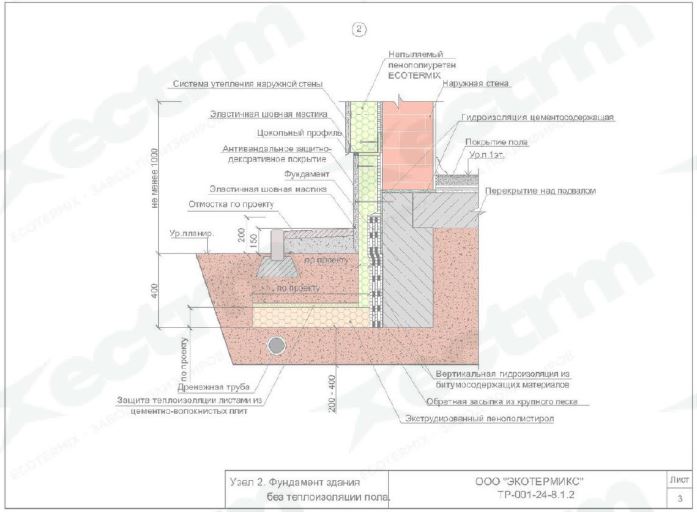 Особое преимущество мастики заключается в совместимости с пенополиуретановыми утеплителями, такими как Экотермикс 300/600. Комбинация этих материалов позволяет реализовывать систему «теплой гидроизоляции», где теплоизоляционный слой и мастичная мембрана образуют единый конструктивный контур без мостиков холода.